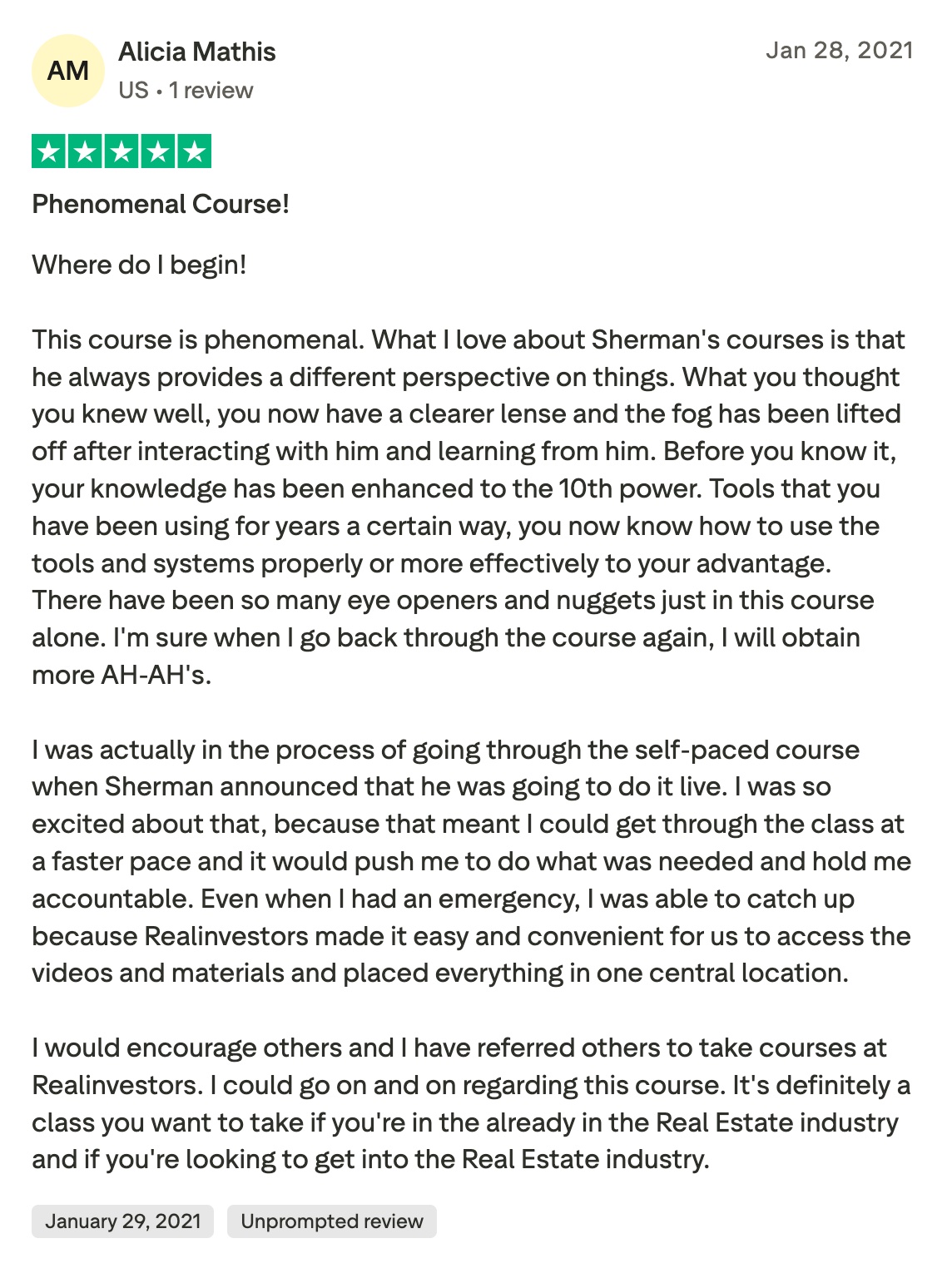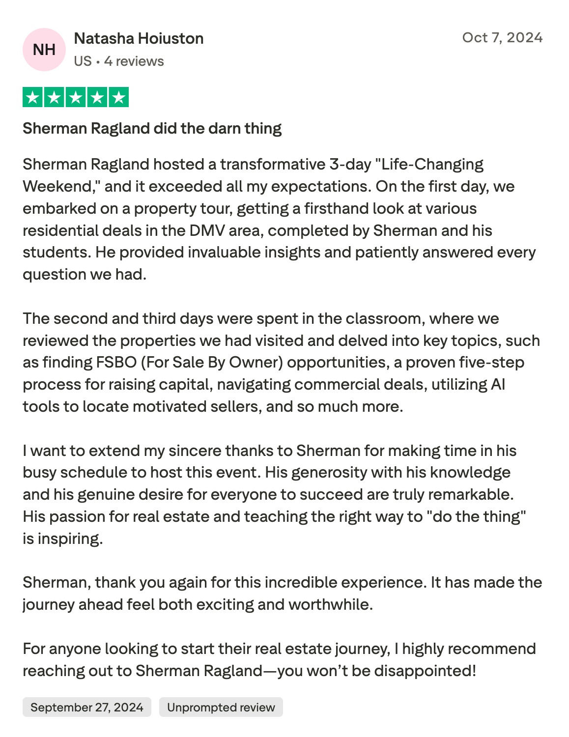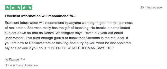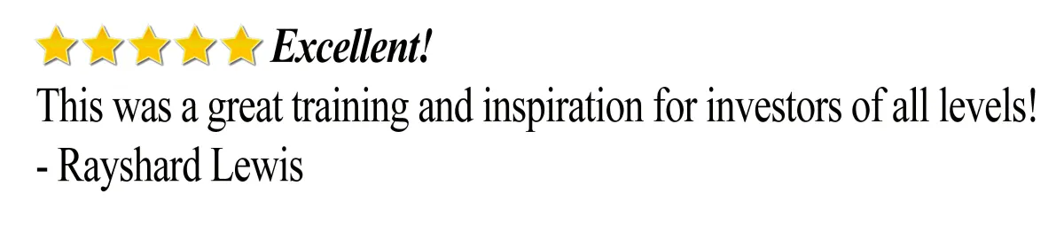 Thank you, Sherman! Based on the training and mentoring you provided, we've raised over $1.2 million for our first private investor event. No longer do we have to do wholesale deals. This is the strategy we need to break into the BIG TIME and it would not have happened without Realinvestors.