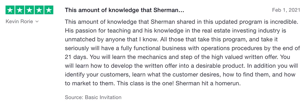 I was able to make over $65,000 in profits on my very fist deal! Thank you Sherman!