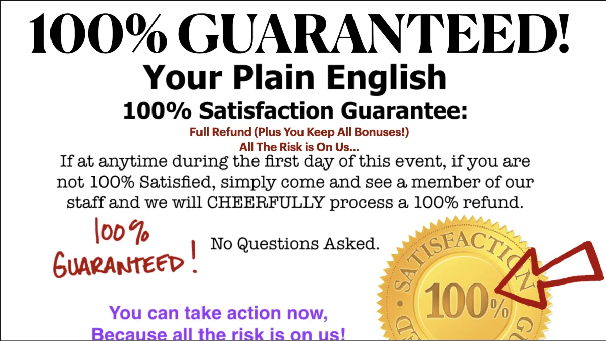 Take comfort in knowing that at any time prior to the event, and up until the beginning of Day 2, if you feel that this is not 100% Worth your investment, simply ask for a FULL REFUND that wil be Cheerfully given, no questions asked, and BEST OF ALL ALL THE BONUSES ARE YOURS TO KEEP, even if you request a full 100% refund!